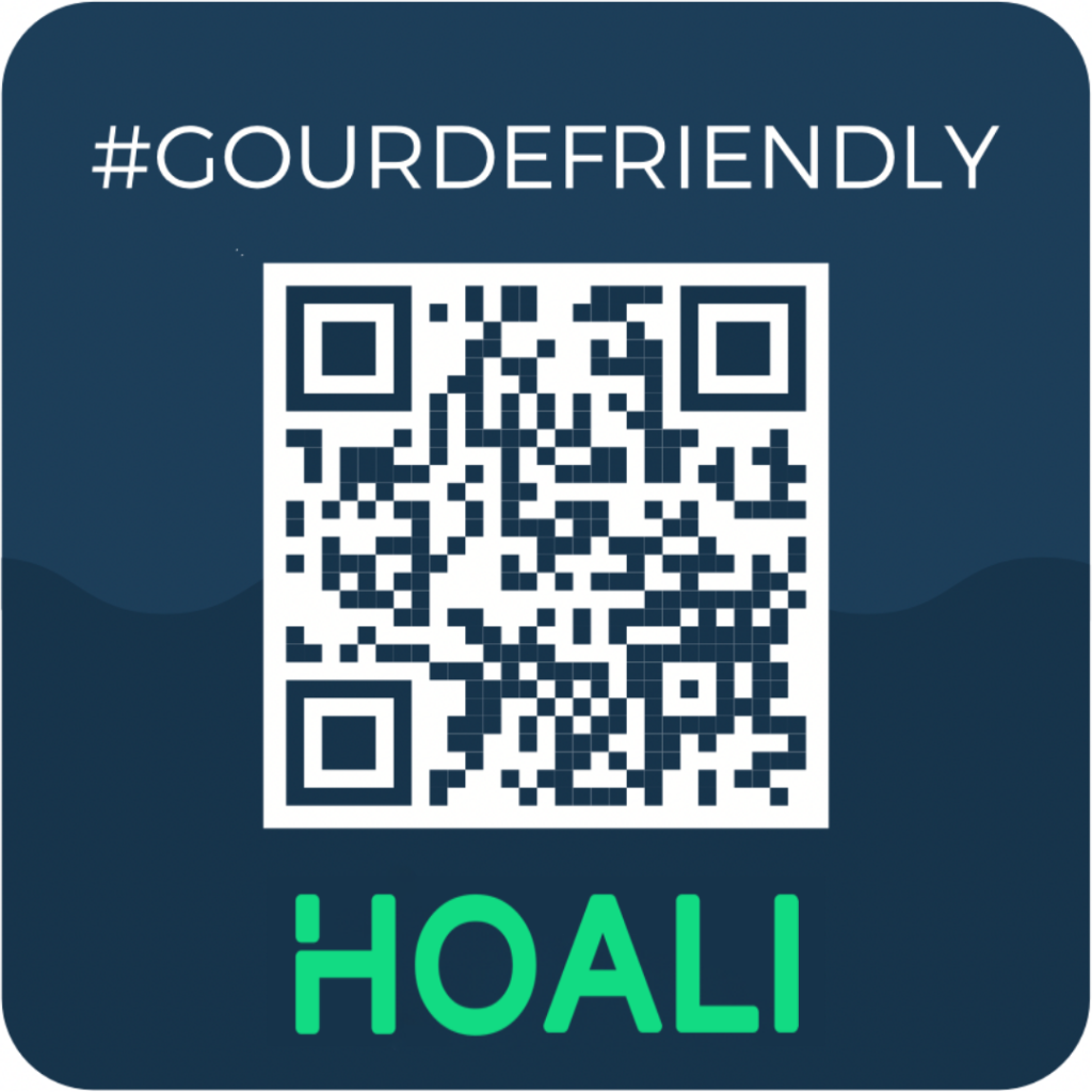 Chaque établissement CHR partenaire reçoit un sticker QR code personnalisé avec le nom de son établissement. Vos clients peuvent scanner le code pour accéder directement à la carte et découvrir votre engagement #gourdefriendly.
